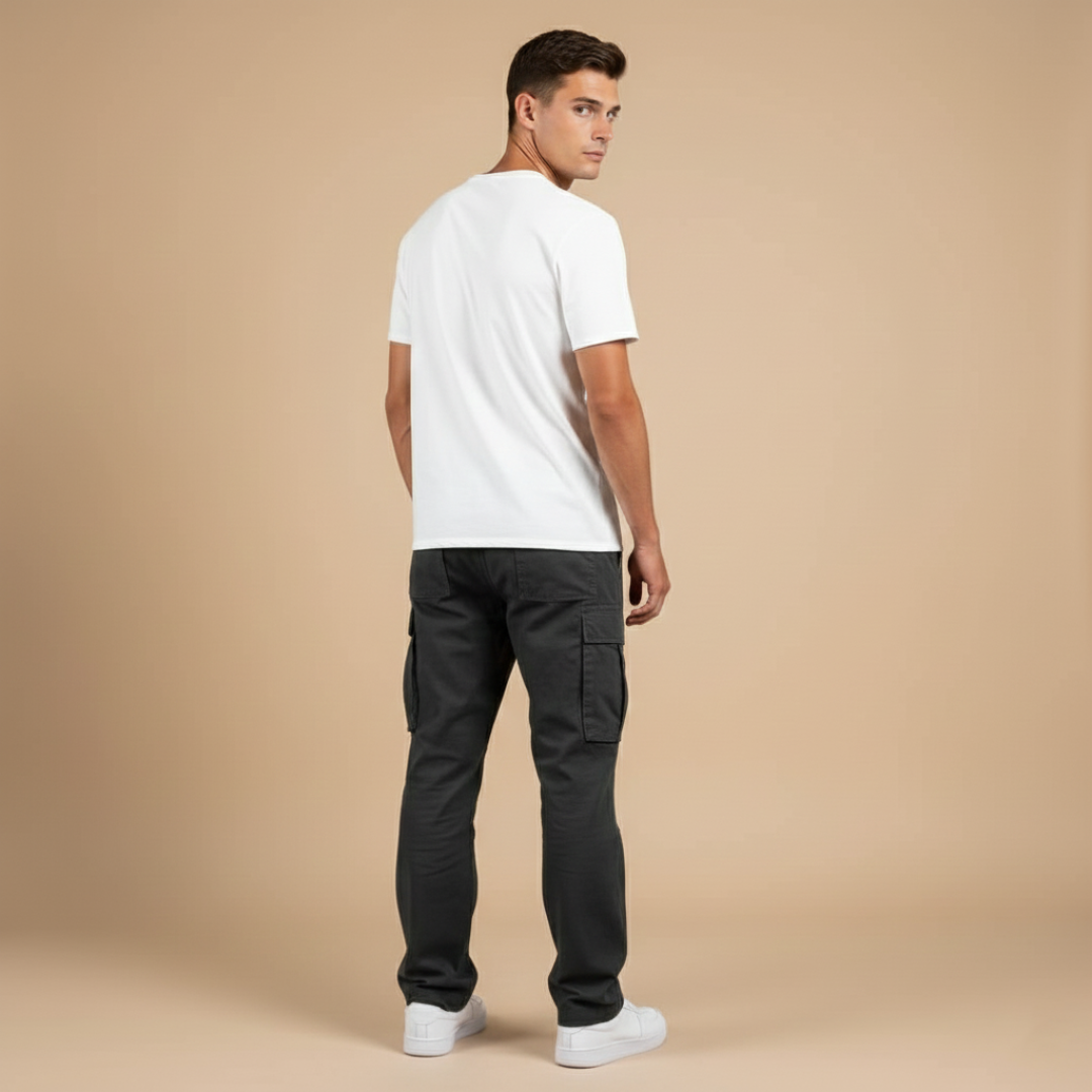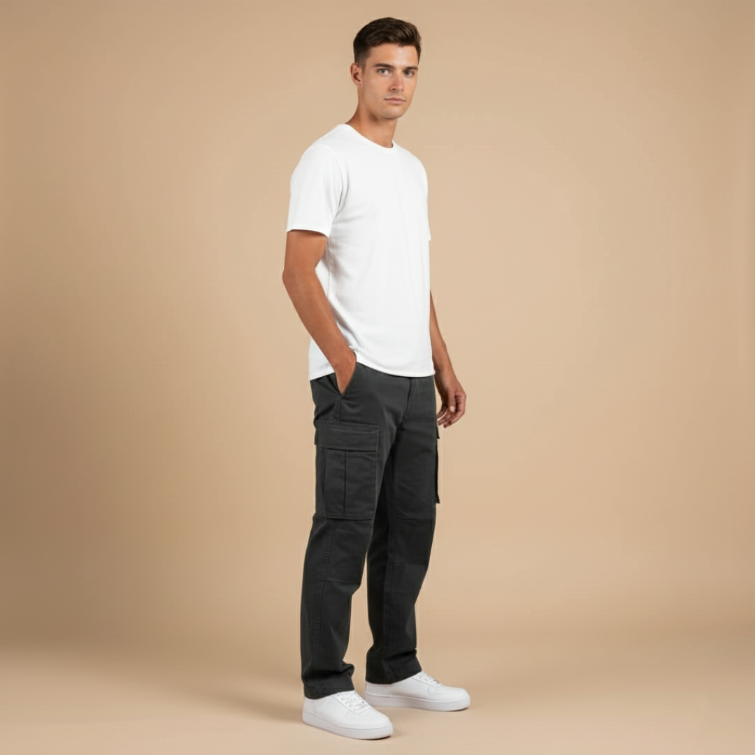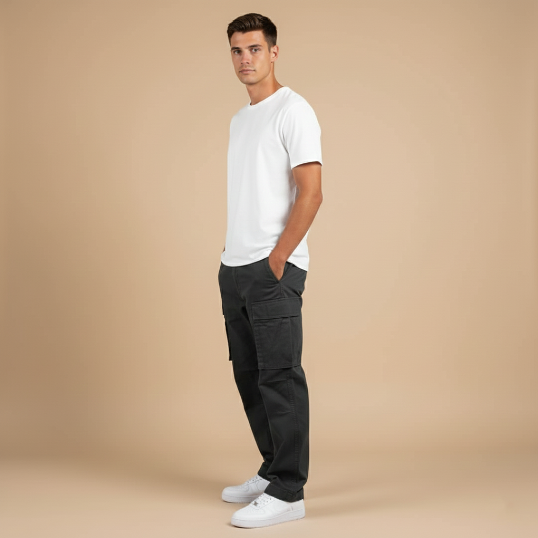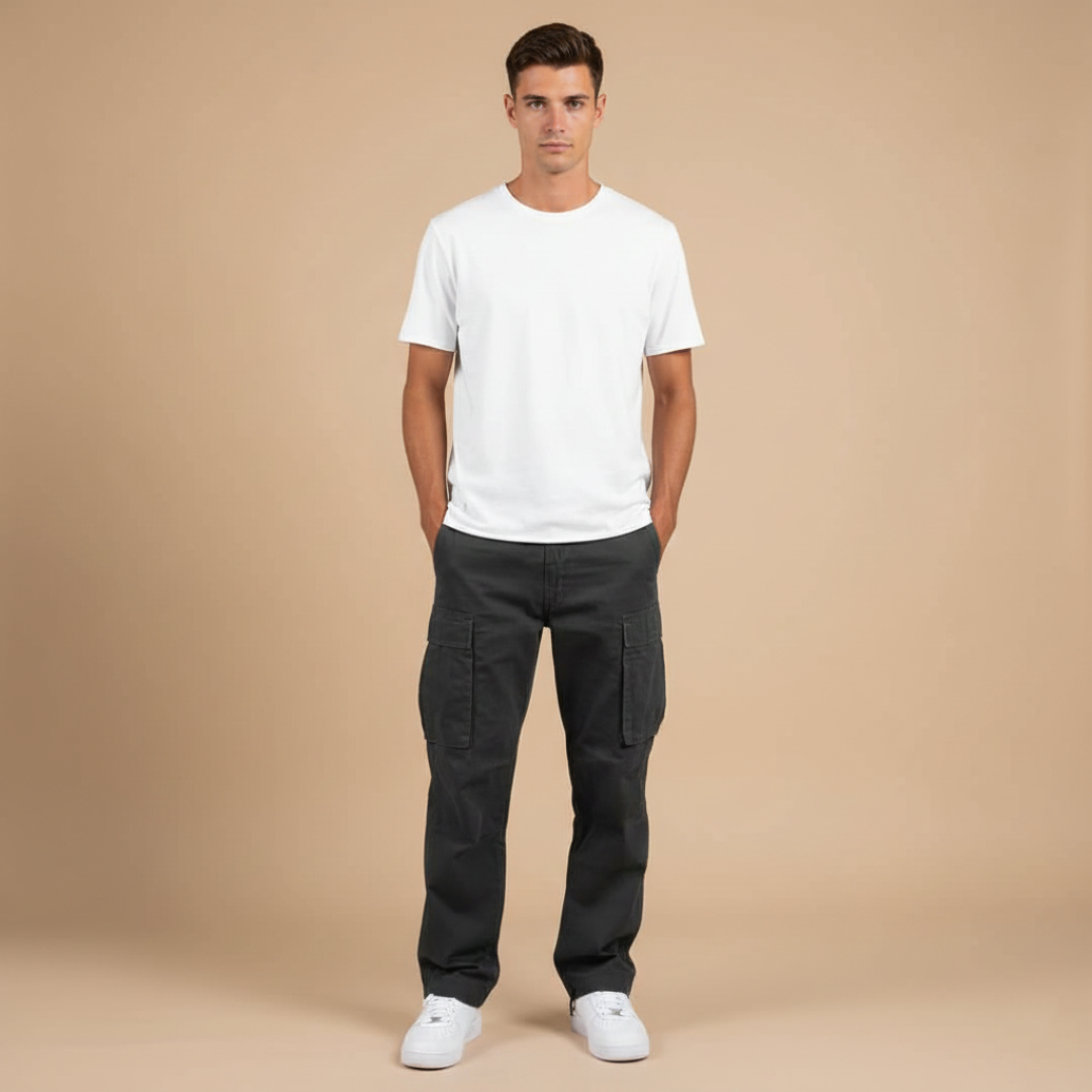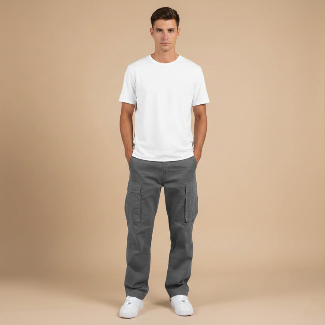 Men’s cargo pants with utility pockets and straight legs
