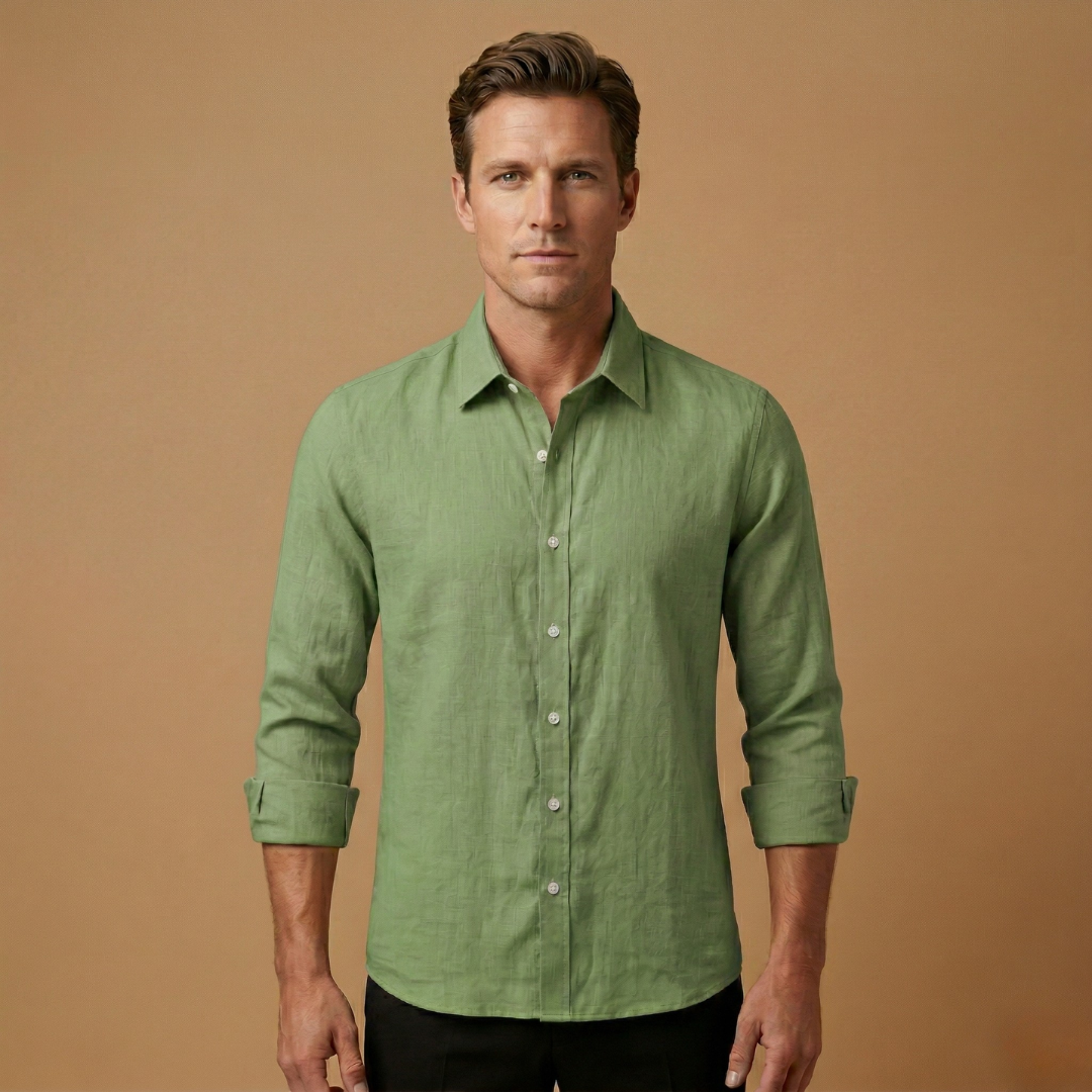 Men's shirt with classic collar, button-down front, and adjustable cuffs for year-round wear.