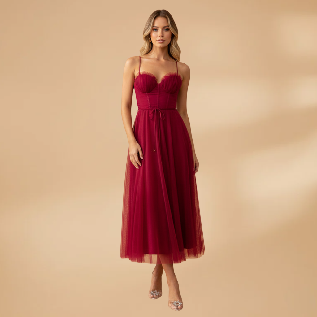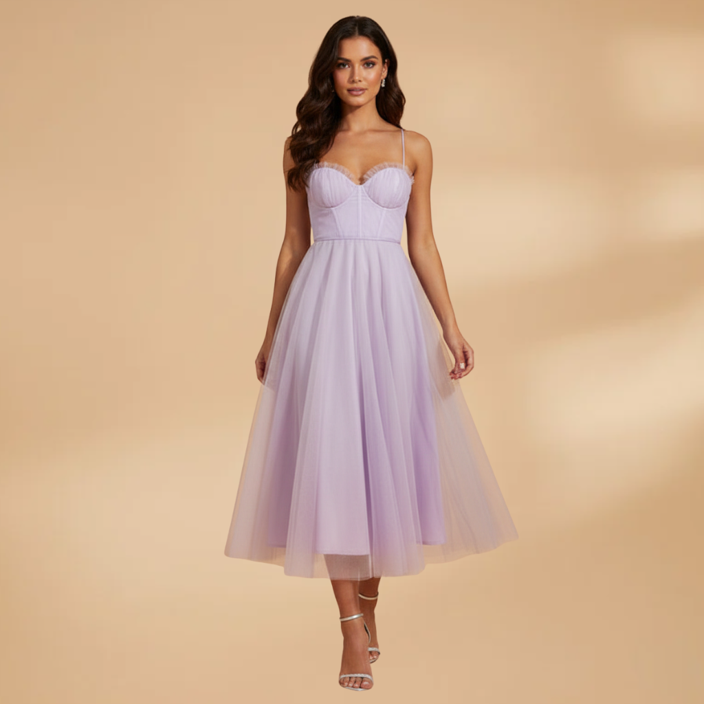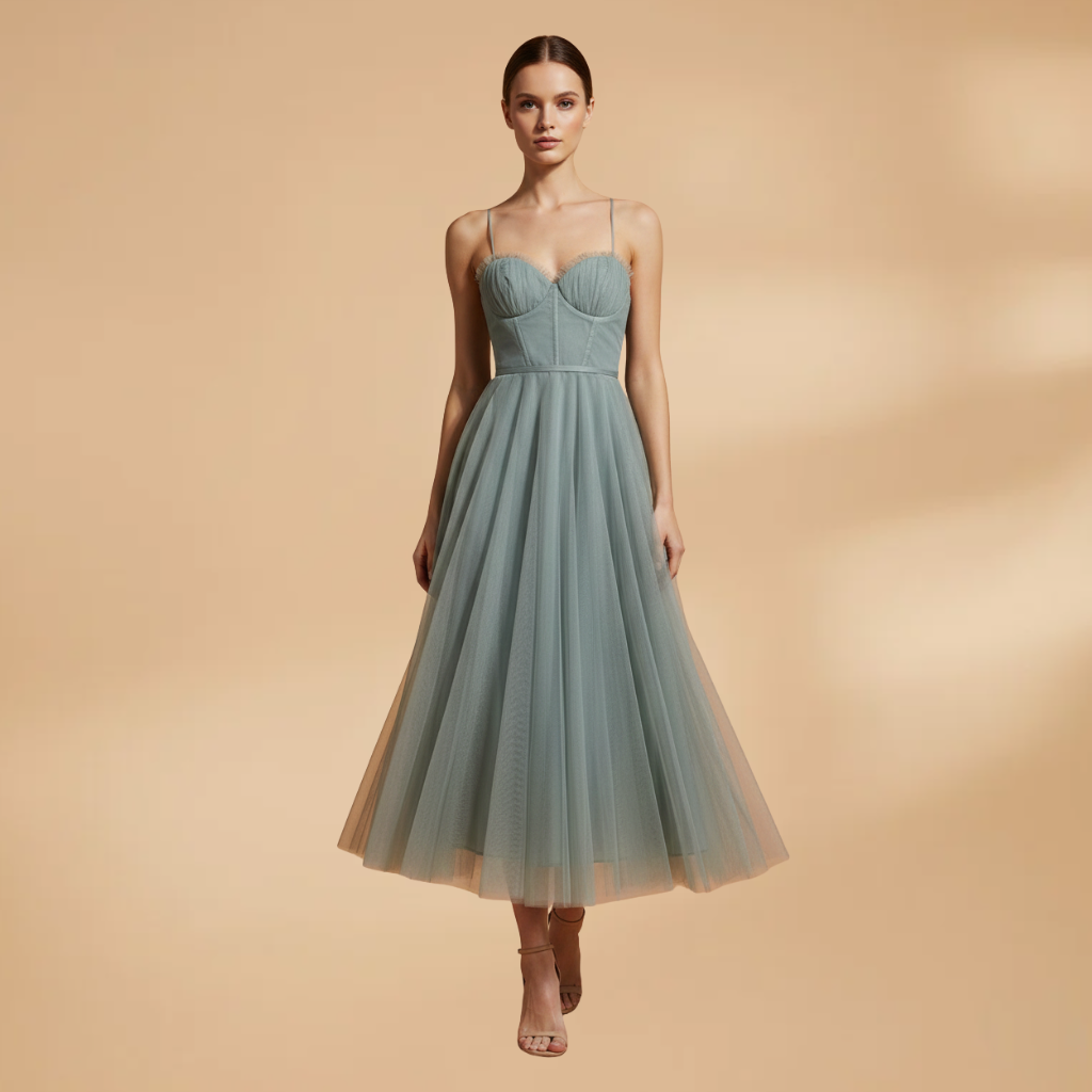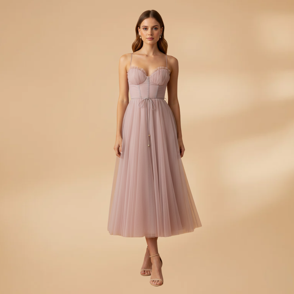 Women’s modern princess chiffon dress with elegant princess straps for a classic style